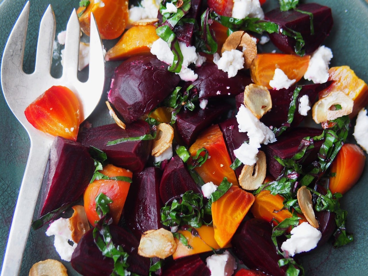 Beet Salad With Garlic Chips & Goat Cheese